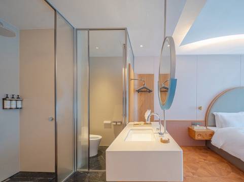 这次的行程中特别要写一下新开业的这家酒店,单从服务方面,前台的男孩儿女孩儿们都非常nice!必须点赞👍🏻我一家三口人订了两间房,因为订的房型不同,我入景区前先办理了入住,拿房卡时希望能两间房在同一楼层,从景区回来又想调整一下靠近湖景的房间,前台小姐姐小哥哥两次沟通都特别有耐心,新开业他们对房型也处在熟悉阶段,一直帮我看怎么调整合适。从头到尾都没有不耐烦特别认真。这是一个新酒店良好的开端,到了旺季或者明年感觉一定会越来越好,到时候应该是一房难求了,哈哈!