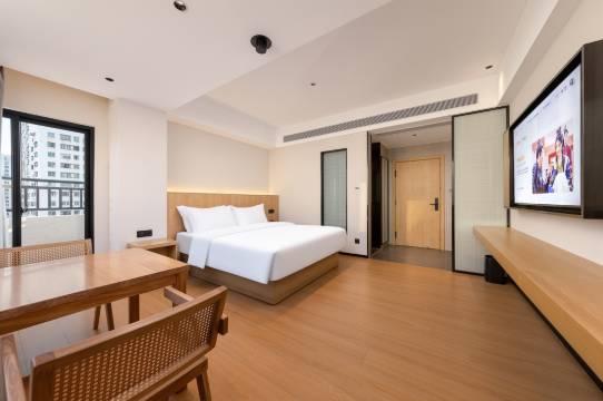 酒店体验感不错,这价格感觉算是性价比的天花板了。住了2次,这次直接给免费升级了房型,感受到极米的投影确实很nice,有会员,音响质感很棒,看电影很惬意~房间无异味,环境卫生确实很干净,看得出工作人员很复责。房间的窗户很隔音,通风采光都很好,房间隔音也确实很好,小度智能语音控制也很方便,真是良心价了,强推一下。