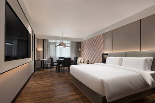 房间干净整洁,设施齐全智能语音控制,床品舒适,隔音效果不错。位置便利,出行方便,服务态度好,整体入住体验很满意,性价比高,推荐入住。