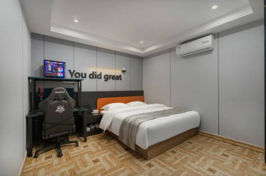 和男朋友一起来的,他打游戏,我追剧。房间设计很有时尚感,也很干净。没想到电竞椅这么舒服,我抢着坐哈哈。前台小姐姐还贴心推荐了附近的奶茶店,茶百道雪王就在楼下,下次来二七这边还会住这里