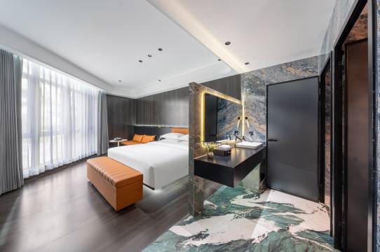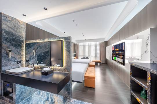 一进酒店就被大堂惊艳到,颜值很高拍照也好看。前台小冯态度超好,办事效率高。房间空间很大,洗漱用品一应俱全,不用自己额外准备。停车免费且位置多,还有充电桩,自驾入住非常方便,性价比超高。