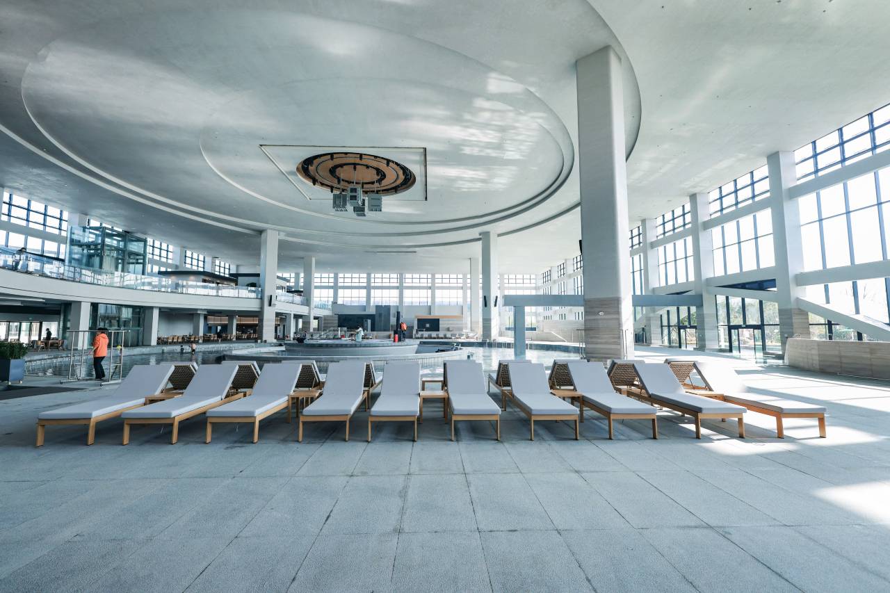 对于这个价格的酒店来说,房间整体设施是匹配的,也非常干净。上午到店后给提前办理了入住。酒店前台的小哥哥和小姐姐服务也非常nice。晚餐外带回酒店忘记拿筷子,正在和前台聊天的工作人员(忘记问哪个部门的了😅)马上主动帮我从2楼取来,非常感谢这位不知道姓名的帅哥。1楼餐厅服务和菜品味道都非常不错。温泉馆水质还是比较干净的,但是功能池偏少。自助水果果品新鲜,种类也挺多的。度假村工作人员整体的服务都是很好的,但美中不足的是有个别服务员的服务态度有待提高,泳衣商店的工作人员在客人问路的情况下,头都不抬,张口就来,让俩个七十多岁老人来回爬了两遍楼梯,希望改进。这次的游玩整体体验感还是很棒的!