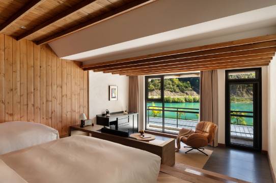 非常好的酒店,交通各方面也很方便,到双桥沟开车二十几分钟就到了。酒店的环境太好了,就在湖边上,餐厅的观景绝了,我们晚上到的有点晚没有感受到,第二天一早进餐厅就被风景震撼了,坐在这里吃早餐真的太治愈了!管家小姐姐的服务也值得夸夸,总之体验感非常棒,推荐!