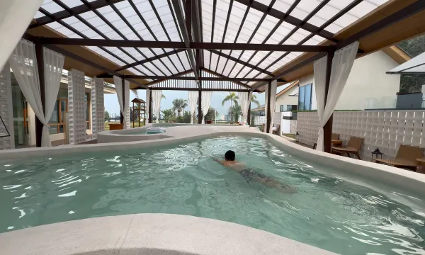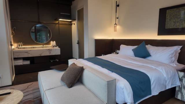 青云·宓境酒店坐落于被誉为“云南小三亚”的邵女坪国际旅游度假小镇,背倚青山,毗邻金沙江,远眺马湖古镇,自然环境静谧而通透。酒店整体采用东南亚风格建筑,以“私密、安宁、慢度假”为核心理念打造。酒店房间均为独立院落设计,私密性极佳。套房配备专属温泉私汤小院,随时可享天然地下温泉的滋养。园区内分布多处温泉泡池、草坪与休憩空间,可散步、拍照或举办烧烤聚会。在这里,远离喧嚣,只需放慢脚步,尽享一段被自然与温泉温柔包裹的度假时光。