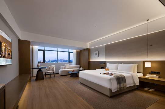 房间挺大的 ,有智能小杜可以使唤,床睡的也舒服,还有智能马桶 冬天不会凉屁股,离高铁站很近打车就十分钟,这家酒店不错的 推荐各位