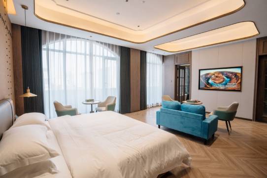 房间特别好,又大又好看,暖光灯一开视觉效果也很舒服。床垫很软乎的,睡得也特别好。入住的时候还送了小饼干,卫浴间很讲究,洗个热水澡太解压了。整体很干净,住着特别安心,推荐!推荐!
