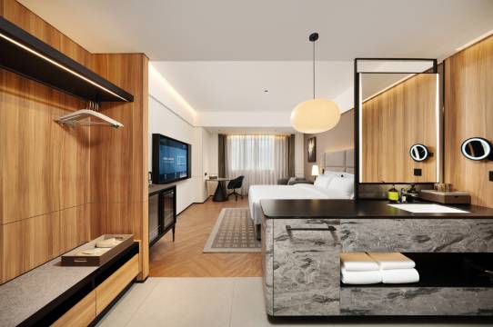 根植“羲皇故里”的千年文脉,浸润“陇上江南”的灵秀气韵,羲域凯莱酒店以国资文旅的深厚底蕴为根基,以现代东方美学为笔墨,在甘肃天水这片承载华夏文明源头的土地上,勾勒出兼具文化质感与品质服务的旅居新图景。作为当地国资文旅板块的旅居酒店,酒店不仅是休憩安居的优选之所,更是链接天水人文风情与现代旅居需求的重要枢纽,让每一位宾客在栖居间,读懂千年古城的过往与新生。酒店以“现代东方美学”为核心设计理念,将天水悠久的羲皇文化底蕴与高品质现代服务深度融合每间客房均以暖调灯光搭配质感软装,营造出静谧雅致、温润舒适的居住氛围。客房配备高品质品牌床品,触感柔软如云,搭配遮光性能极佳的窗帘及独立分离式空调,从硬件上保障宾客安享一夜好眠。房间内同步配置高清电视、高速全覆盖无线网络及宽敞写字台,兼顾娱乐休闲与商务办公需求;迷你冰箱、电热水瓶、针线包等便民设施一应俱全,部分房型更搭载智能客控系统,实现灯光、窗帘、空调等设备的一键操控,便捷度拉满。卫生间采用干湿三分离设计,搭配品牌淋浴设施、大功率吹风机及优质洗护用品,于细节处彰显贴心服务,守护宾客旅居舒适体验。