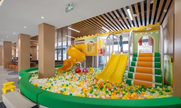 设施崭新 卫生到位 环境确实不错 特别是孩子的游玩设施种类丰富 孩子非常喜欢 早餐也比较丰富 还送了伴手礼 下次还来