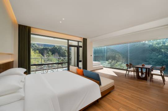 整间房都是落地窗,在洒满阳光的午后,沐浴在浴池中,望着窗外满眼绿色的美景,犹如仙境一般。酒店工作人员很热心周到,并帮我们解决了困难,离店时还送了贴心小礼物,下次还会再去
