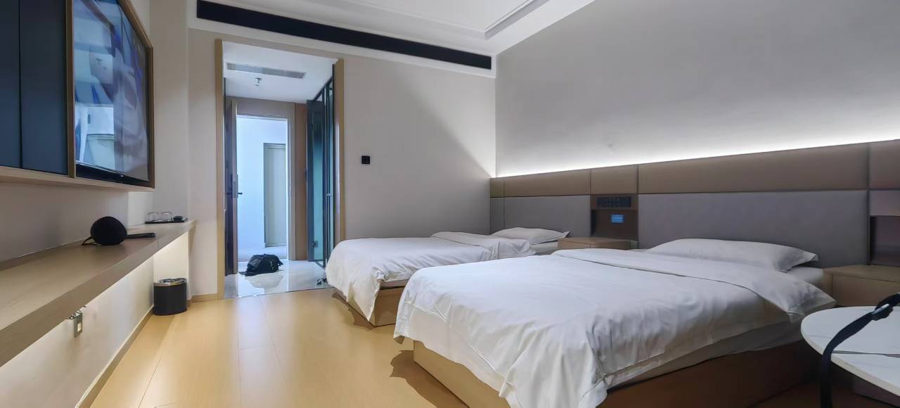 空间很宽敞,布局清爽干净,智能一体。枕被特别舒适,安静无干扰!值得点赞!