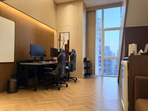 本人新年旅行从杭州过来宜春玩,那边之前在浙江都没见过好一点的电竞酒店看到这家,离高铁站挺近的想着过来试一试看,结果超预期的满意这个房间装修也比较符合我本人的口味,比较高端大气尤其是其中一个小细节挺满意的就是他电脑桌边上会有一个一键开门的设计,像打游戏的时候外卖来了非得要暂停站起来去接外卖的问题得到了解决,这个设计还是比较符合当代年轻人,可以直接开门跟外卖小哥说让他进门送到手边