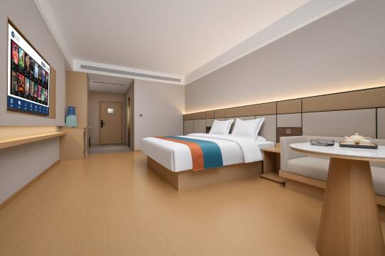 县上新开的酒店,很干净,好找,停车方便,前台人员热情,我们定的豪大房型,房间宽敞,干净,最主要的智能马桶,咱北方一年有好几个月天气比较冷,智能马桶非常好,上厕所不冰屁股,中央空调,制暖效果非常棒