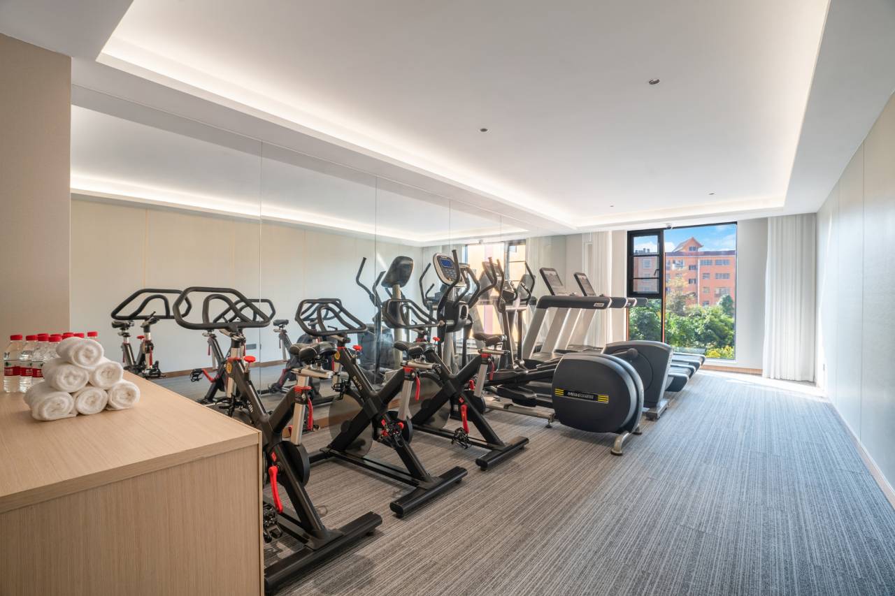 健身房器材很齐全,跑步机、椭圆机都有,商务出行也能坚持锻炼,入住有欢迎茶和糖果,瞬间消除旅途疲惫,太贴心了,出差去客户那里很方便,离县政府行政核心区只有10分钟路程