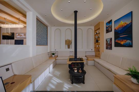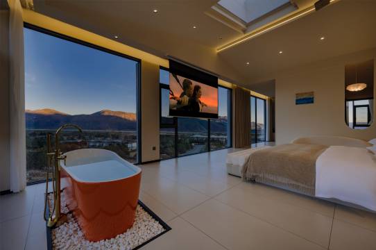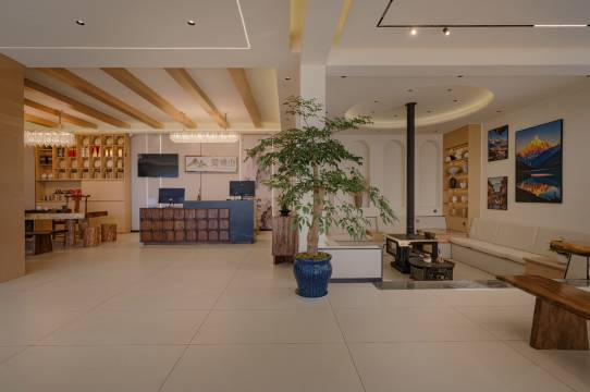 房间全景落地窗正对雪山,不用早起挤观景台,裹着被子就能坐等日照金山,金光漫过山顶的瞬间,所有疲惫都被抚平。酒店私密性超高,远离喧嚣,只有风声与阳光,安静到能听见心跳。