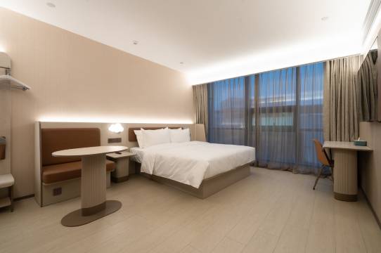 梅州之行最满意的一家酒店,停车方便还可以充电,洗护用品是木质调的调香很好闻,房间通透且灯光充足,全身镜和洗漱镜都有灯光,配有智能马桶,周围点外卖也很方便,基本都十五分钟能吃上,还有机器人送餐,早餐也是嘎嘎好吃,师傅做的腌面很不错。整个酒店所有区域的工作人员都非常专业且有礼貌,谢谢汉庭,美味梅州下次还来。
