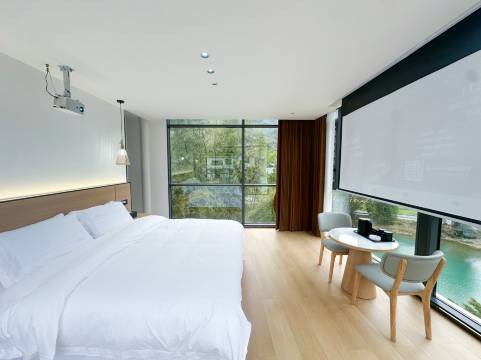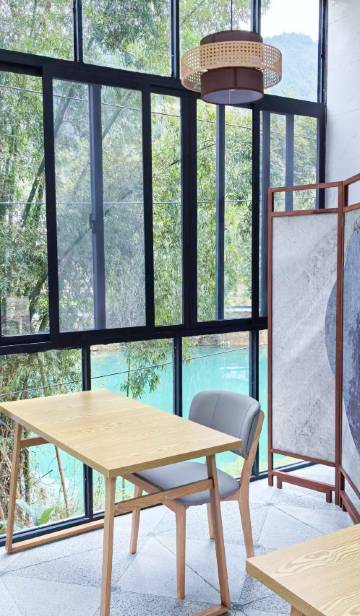 民宿临水而建,一步一景部分客房均享极好视野推窗即见:轻舟穿竹林、红桥映碧水、远山如墨画、黄昏 “日照金山”朝暮景致各有韵味。