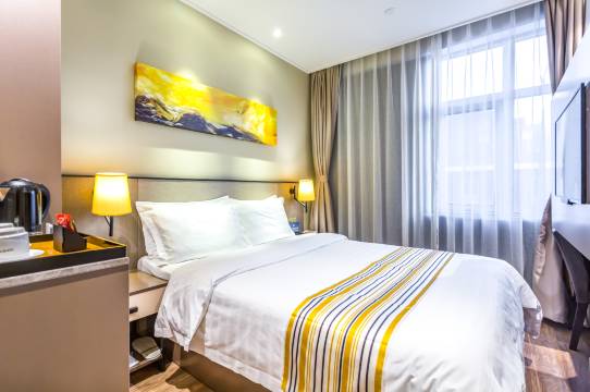 酒店环境安静整洁,地理位置优越,交通便利,适合商务出差和休闲旅行,周边生活配套设施齐全,公交站很近,房间安静舒适,前台服务热情周到,休息区的咖啡很香,寄存行李很方便,临时有事儿帮延迟退房了很好,整体感觉很好