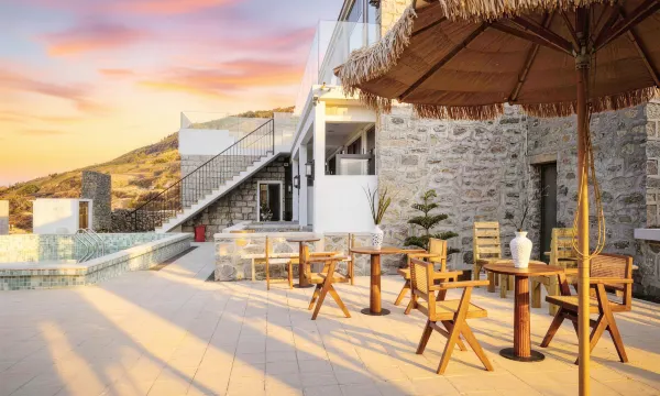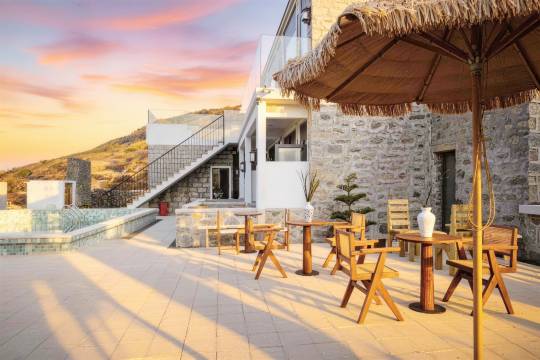 房间视野超级开阔,风车、大海、蓝天尽收眼底;有一个超级大的户外泳池,还有小的泡池,泡在水里看风车海,小朋友夏天来估计很喜欢;景色非常出片,装修品质非常好,真的很推荐。这才是度假该有的样子。