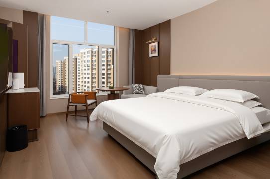 房间空间宽敞,布局合理,采光特别好,视野也不错。床品柔软干净,枕头高度适中,睡起来特别踏实,一觉到天亮。卫生间干湿分离,洗漱用品齐全,水质和水压都很给力,洗澡很舒服。房间里各项设施都很新,空调、网络、电视都正常好用,细节做得很到位。