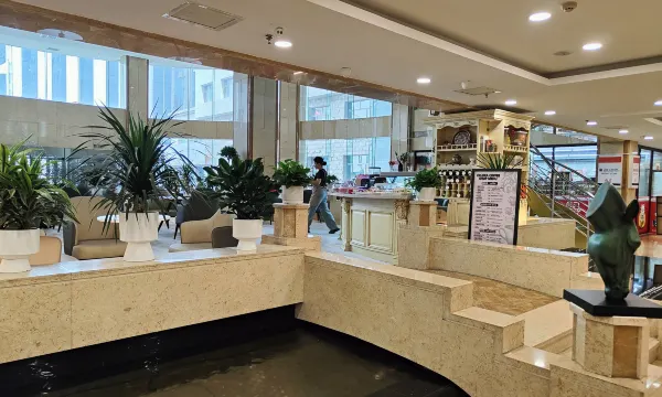 大堂区域很大,有超市,有休息区。房间面积也很大,体验舒适。宾馆楼下是一个商场,有面积很大的停车场,停车很方便。