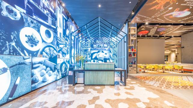 酒店拥有各类主题客房700余间,整体设计风格主打波普艺术风,注重色彩的碰撞和混搭,其中百米穹顶长廊和可容纳近千人的波普艺术餐厅独具特色,让尊贵的你不出酒店就能get到上海网红拍照圣地。
