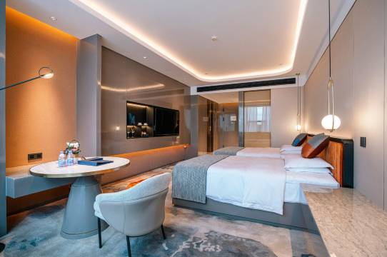 酒店占地面积约31800平方米,客房单间面积均超35平方米,拥有配套设施完善的现代简欧风格全景观各类客房,多种房型满足您休闲度假、商务出行、招待贵宾的各类需求。