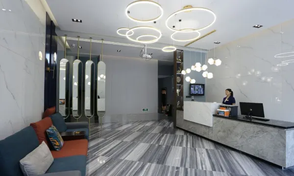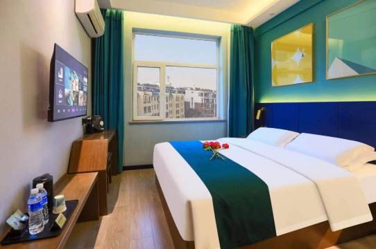 酒店外观为红色现代建筑,时尚大气。室内装饰为现代简约轻奢风格,突出艺术性与文化氛围,彰显星级酒店的尊贵与豪华,大胆撞色的时尚设计,给人带来超强的视觉冲击。宾客一经入住酒店,就可以立刻摆脱城市的喧嚣进入一个轻松舒适的场景,即刻享受现代科技(智能小仆人小度)给您带来的轻松愉快的“懒人生活”。