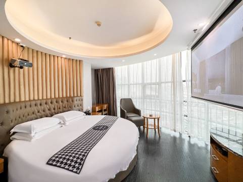 5.清晰的网络数字电视,100寸巨幕坚果品牌投影设备及2米圆床;