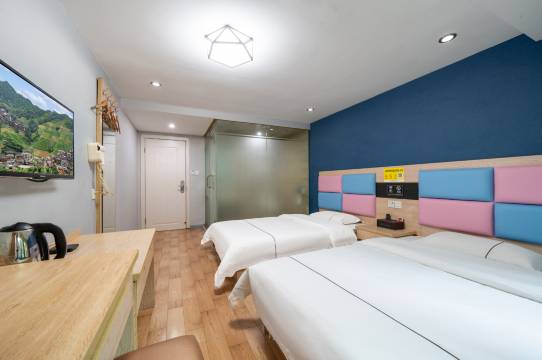 房间比较简洁,干净。也没有什么味道,一开始订看评论说这问题的。我住的这我感觉挺好。服务也挺热情,小姐姐耐心告诉我们周边好吃的好玩的。下次一定再来!