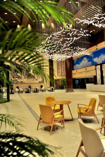 酒店占地面积3.2万平方米,经营面积1.6万平方米,绿化和经营面积的比例为1:1,酒店采用的是中式庭院设计风格,环境优雅舒适。酒店经营共四大项目,包括餐饮,客房,会议接待,云之蓝茶室。
