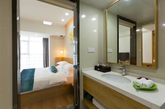 和朋友出来玩住的,房间干净卫生,落地窗可以直接看到窗外的景色,很好非常推荐入住,老板人也很好,很热情