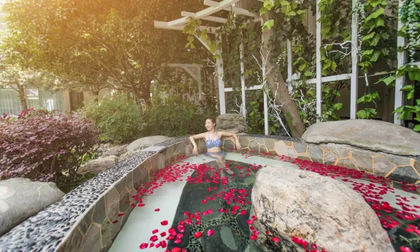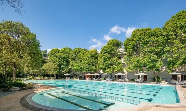 酒店设施其全,有泳池温泉泡池每天傍晚泡在温泉泡池里非常舒服环境优雅安静园林式风格很喜欢,前台接待员和打扫卫生服务员工作认真负责,有问必答这次酒店很满意。