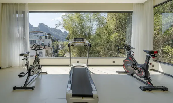 房间面积很大,装修的非常清新赏目,屋内的一应设施都是采用天猫精灵,舒适度很高。 一次性用品质量很高,处处显得店主的用心。 阳朔当地特色的沙糖桔矿泉水随便取用。特别干净卫生。马桶也用全自动化马桶。3楼有洗衣房, 4楼有健身房, 1楼有儿童游玩区。本来担心民宿配套问题全部没有。是一家非常棒的民宿。我们乘9:30的游轮到达之后,因为酒店离这水厄的码头很近, 走大约不到10分钟。直接坐了竹筏漂流漂流。老板和老板娘性格温和,态度非常好。酒店屋外风景如画。对了,管早餐,早餐质量很高,推荐米粉。