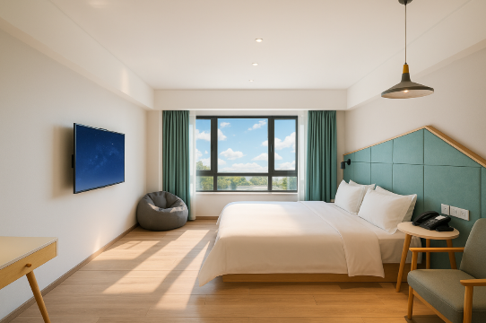 房间很宽敞,采光好,地暖温度给力,楼下美食街吃饭方便,还有大型超市,酒店工作人员很热情,卫生干净,推荐入住
