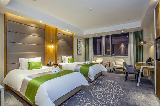 前台帅哥给升级了湖景房,风景很漂亮,能看见明月湖,房间干净整洁地毯也比较新,还有室内常温泳池,性价比非常高了,酒店细节做得非常到位还准备了超好吃的小零食,碰到下雪天气太冷了还送了一个小加湿器,很贴心了,早餐也丰富,服务人员态度也很好这次住这里给我感觉旅途很温馨,超赞