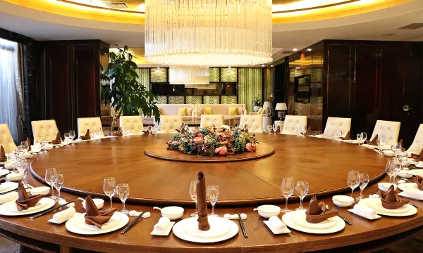 酒店拥有剧场式宴会大厅,可同时容纳1000人就餐。宴会大厅配有超大LED屏和先进的灯光音响设备,是您承办喜庆宴会的理想入住场所。