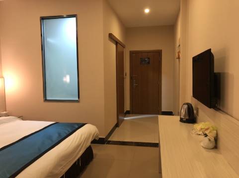 房间卫生很好,装修也很不错,简单大气,只是拍照技术不好,拍不出实际效果,价格也特别亲民,离东兴口岸1.5公里左右,附近有吃的,比较方便,老板人比较好,旺季也没有涨太多价格,非常推荐的一个酒店