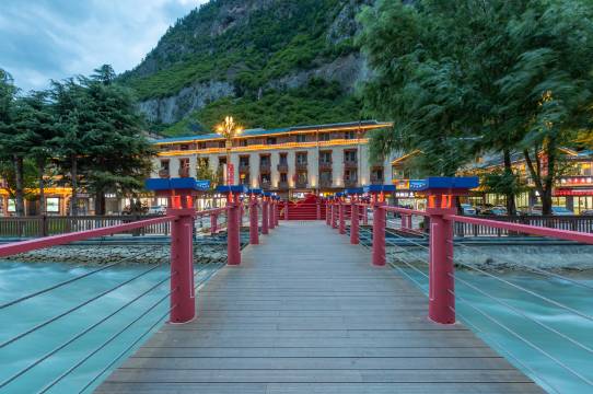 宾馆位于九寨沟风景名胜区漳扎镇彭丰村,距景区门口约400米,距九寨沟汽车站约1000米。