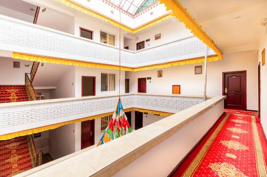 宾馆为藏式装修风格,我们有双人标间,大床间,三人标间,家庭间。无线宽带覆盖大厅,公共区域及所有房间,中英文书籍可供客人阅读和交换,楼顶烧烤区客人可以使用烧烤工具。前台提供旅游咨询,拼车信息,预订机票汽车票,代订藏羌歌舞表演及藏家参观。提供自助洗衣设备。