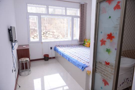 森月山庄在东升雪谷的最里面,这个位置刚开始让我们挺郁闷的,因为坐大巴过来,一路上人都下完了,我们是坐到最后的,晚上又冷又饿的时候真的有点着急。但是第二天就觉出好处来了,山庄离马路和中心小街有段距离,比较独立,很安静,门口一大片空地可以玩雪,还有冰封的小溪,有自建的雪圈道,环境很好。差不多是离雾凇岭和羊草山最近的民宿了,而且对面就是心悦来滑雪场,各种游玩很方便。我们住的四人间,感觉不如三人间,房间比图片的感觉小一点,屋内没有桌子,行李、包什么的只能堆地上,早上靠窗那头有雾气水,枕头会有点湿,衣服别放枕头边上。看到三人间朝南,还有小桌子。我们睡的炕温度正好,不会太热燥得慌。老板一家人很好,一定好酒店就主动联系我询问坐车的情况,帮忙联系车和定各种游玩门票,冻梨冻柿子也随便我们拿。