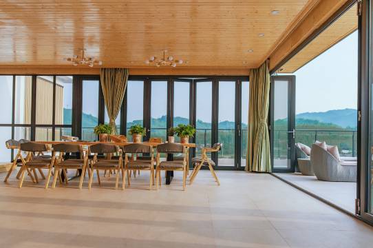 入住这家真是处处惊喜,庭院式民宿,装修很轻奢,房间够干净,设施够齐全,服务热情,四面环山,空气清新,窗外都是田园风光,绿植环绕,真的很开心呀!