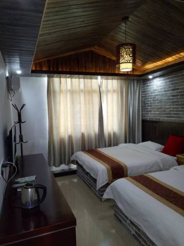 老板特别好哦还接送停车还给我们免费升了房间,房间环境还可以装修都是新的,价格也很实惠,而且就在景区入口几米的地方好找,非常推荐