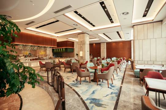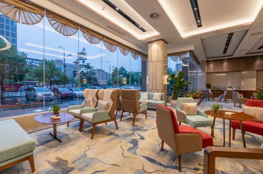 每间客房配备柔软舒滑高档床品、瞬爽瀑布淋浴系统、智能红外感应照明、“懒人”触控自动窗帘,让你在这古老文明与创新思潮的饶城,独享这一份温馨和舒适。精致中餐和醇香Gateau西点,让您品味舌尖上的饕餮美食。国际金钥匙服务将负责您的旅行和商务活动,给您温暖!