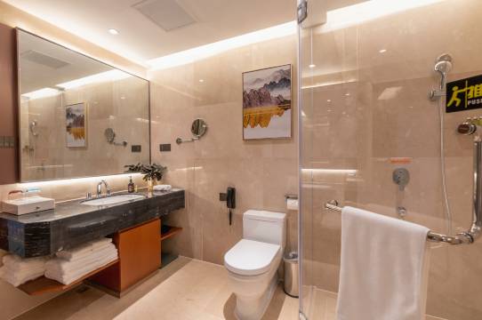 必须给这家酒店一个大大的好评!房间智能又舒适,有机器人帮忙送东西,太方便了。地下停车场宽敞,停车毫无压力,对于自驾出行的我来说很贴心。酒店离高铁站近,节省了不少时间。晚上回房还收到了夜床礼,小礼物和温馨提示,细节满满。房间干净整洁,设施新且全,床品柔软亲肤,一觉到天亮。前台和客房服务人员态度热情,响应迅速。整体体验超棒,无论是商务出行还是旅游度假,这家酒店都是绝佳选择,下次还来!