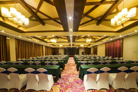这里中餐厅经营特色炒菜以及商务宴请,美味可口;面积超过1000平米的多功能宴会厅及各式特色包间可承接各种会议、宴会、自助餐和包桌宴请等。