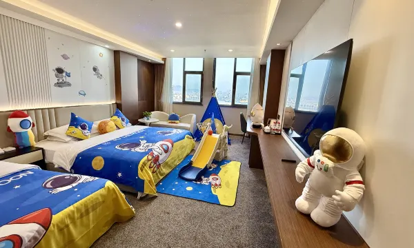亲子房布置超用心,卡通主题童趣满满,房间宽敞整洁,儿童拖鞋、浴袍、洗漱用品一应俱全,细节拉满。酒店配备儿童乐园与泳池,孩子随时能撒欢玩耍,解放家长双手。