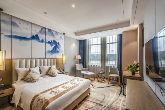 房间非常大,设施齐全,干净整洁。地理位置优越,交通便利,距城区各景点不远,离高铁站二十多分钟车程。早餐品种多,味道不错。