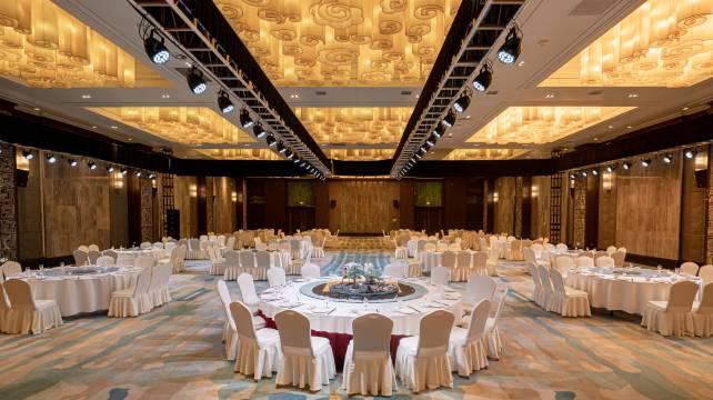 在酒店的朱华厅吃了团员餐,20人的包间,装修精美大气,食物不错,完美