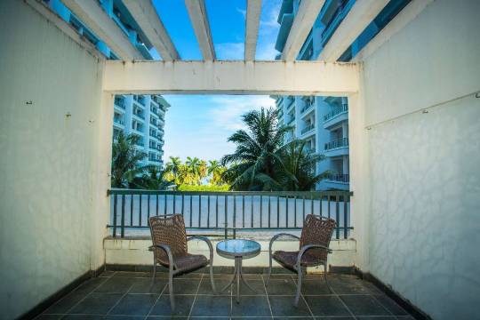 房间宽敞有海景,楼下有吃的和商店水果摊,很方便