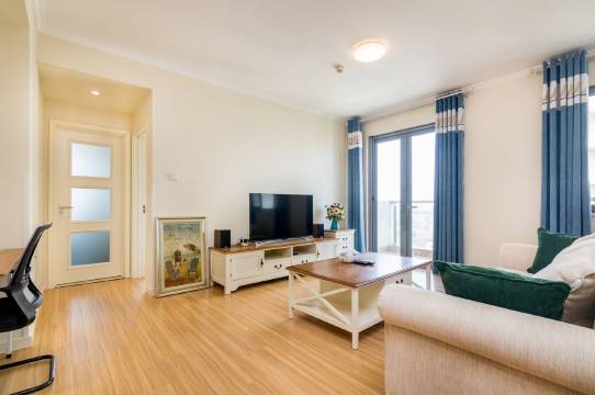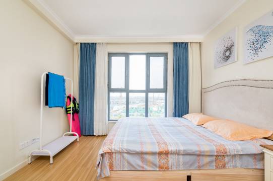 我的公寓位于北戴河新区华贸蔚蓝海岸一期具有地中海风情的花园社区内。从这里步行几分钟即可到达2.8公里长的蔚蓝海岸社区沙滩。这里,游客稀少,沙滩松软,海水洁净,空气清新。蔚蓝海岸社区提供丰富多彩的运动休闲活动和餐饮服务:航海夏令营,高尔夫练习场,沙滩酒吧,有机农场采摘,周末沙滩篝火晚会,渔夫海鲜餐厅,经济实惠的业主食堂和便民超市。无论您是自驾或是乘坐火车,都可方便到达。华贸蔚蓝海岸社区为您和家人打造轻松惬意的夏日时光。我的公寓有1张温馨舒适的1.8米卧床卧室,卧室内还有一个单人沙发床。开发式厨房配备电磁炉,适合做些冷餐和简单食品,楼下的业主食堂提供经济实惠、丰富多样的早中晚餐。清晨,您可在沙滩慢跑或健走,回公寓前在业主食堂享用早餐。晚餐后,您可以在沙滩散步并在沙滩酒吧小酌一杯。您一定会爱上我的海滨公寓。